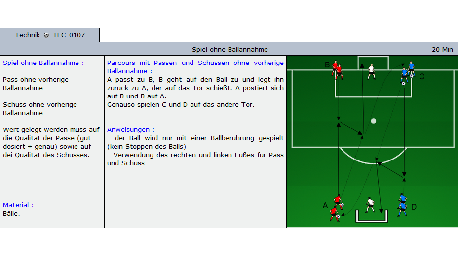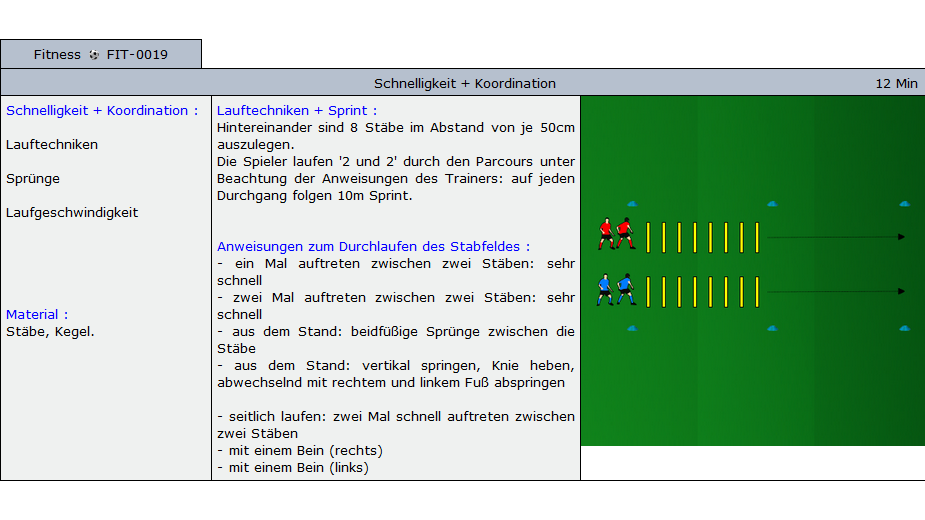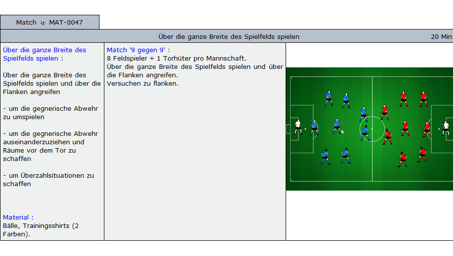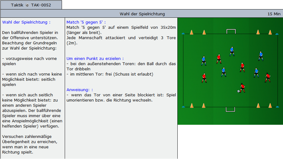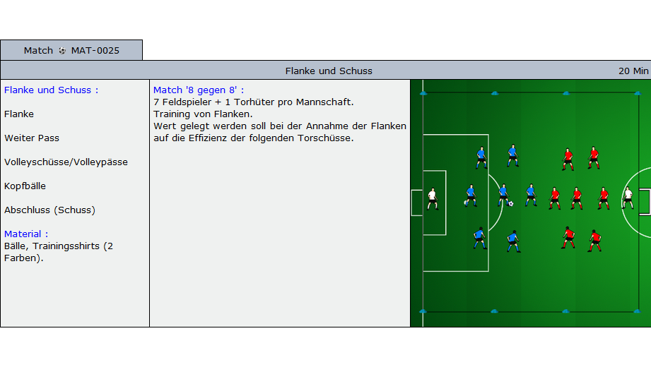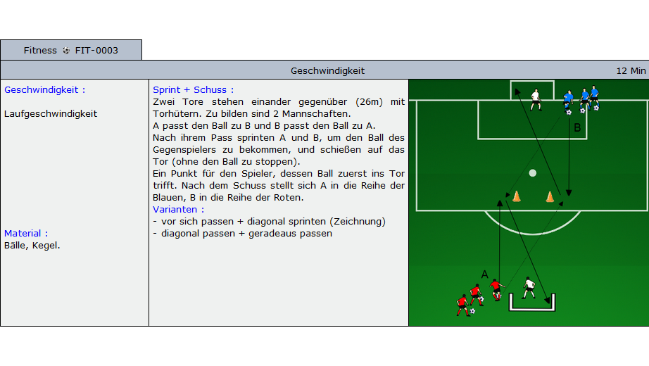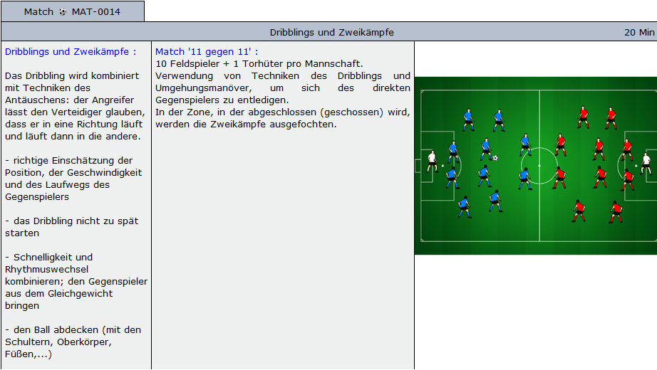 Beispiele für Übungen die im Soccer-Trainer Online enthalten sind: Aufwärmübungen, Fitnessübungen, technische und taktische Übungen und Spiele für alle Alterskategorien.